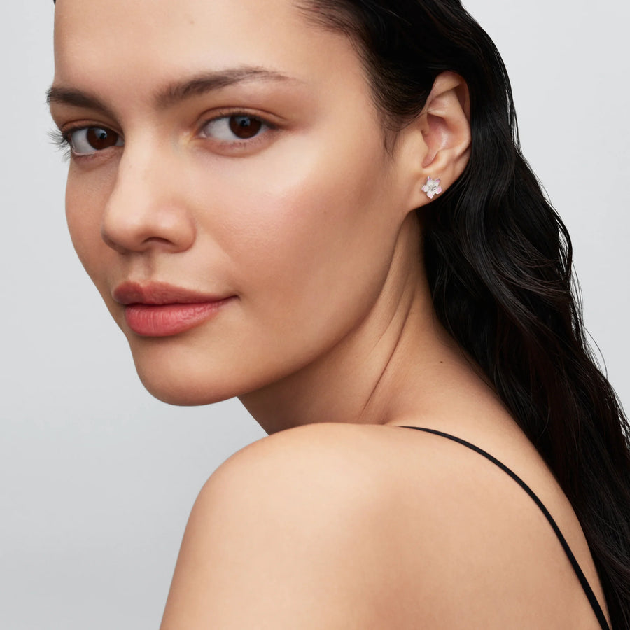 Puhke õide täies ilus. Meie sterlinghõbedast tagusega kirsiõiekõrvarõngad on kaunistatud käsitsi pealekantud roosa emailiga, mis sümboliseerib uuenemist ja kasvu.