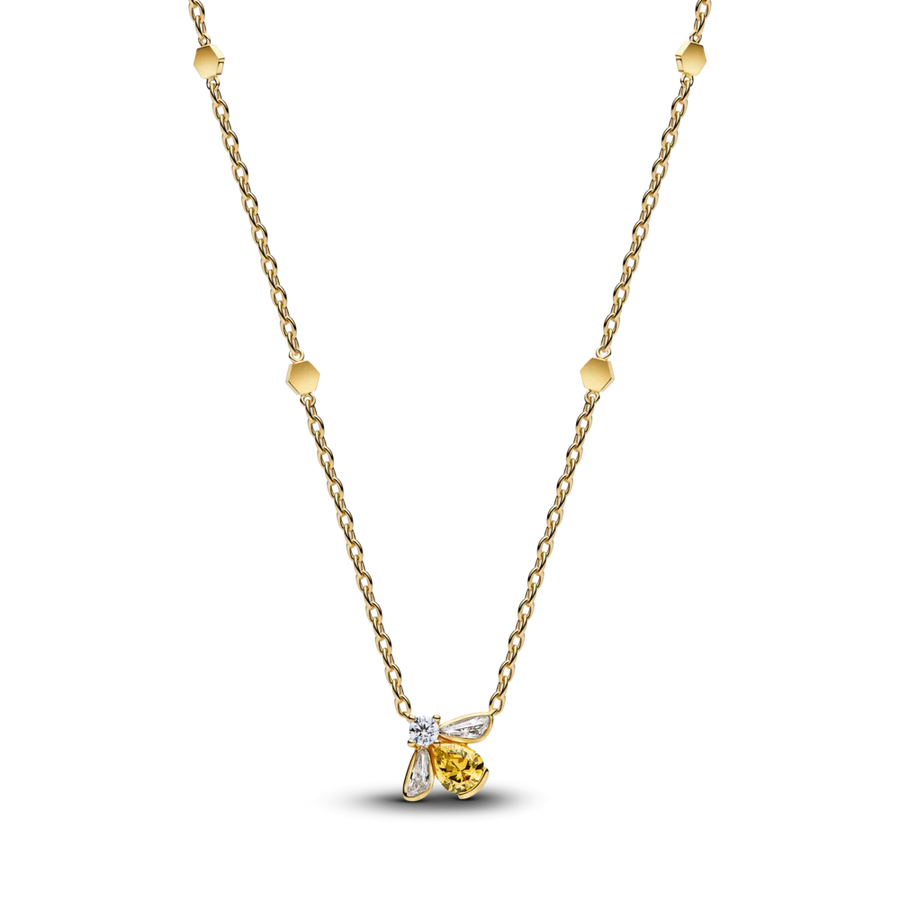 Pane oma stiil särama. Meie 14-karaadise kullaga kaetud kaelakee on kaunistatud erkkollase ja läbipaistvast kivist mesilasega, mis on kinnitatud kärgstruktuuriga detailidega ketile. Magus sädelus, mis sobib mesilasemale.