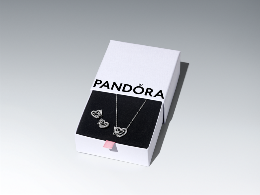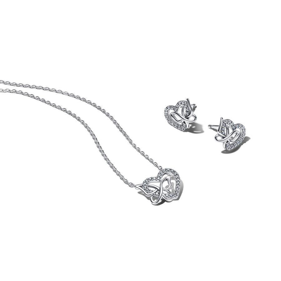 Tähista looduse ilu ja armastuse jõudu oma Pandora Momentsi põimunud südame ja liblikaga kaelakee ning kõrvarõngaste komplektiga. Hõbedast valmistatud ja sätendavate kivikestega viimistletud ehted on loodud püüdma valgust justkui lendleva liblika tiivad.