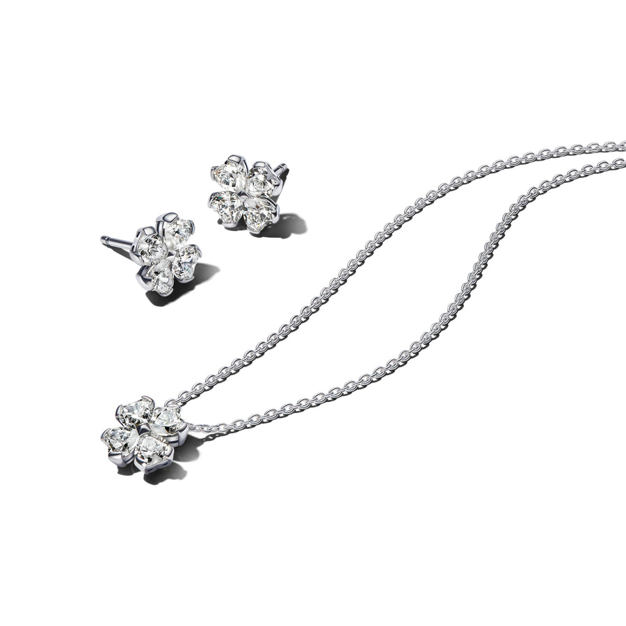 Hoia õnn ligidal meie Pandora Timeless kollektsiooni ristikheina kaelakee ja kõrvarõngaste komplektiga. Sädelevad südamekujulised kivid on paigutatud kõrvuti, luues loodusele omase õnneamuleti.